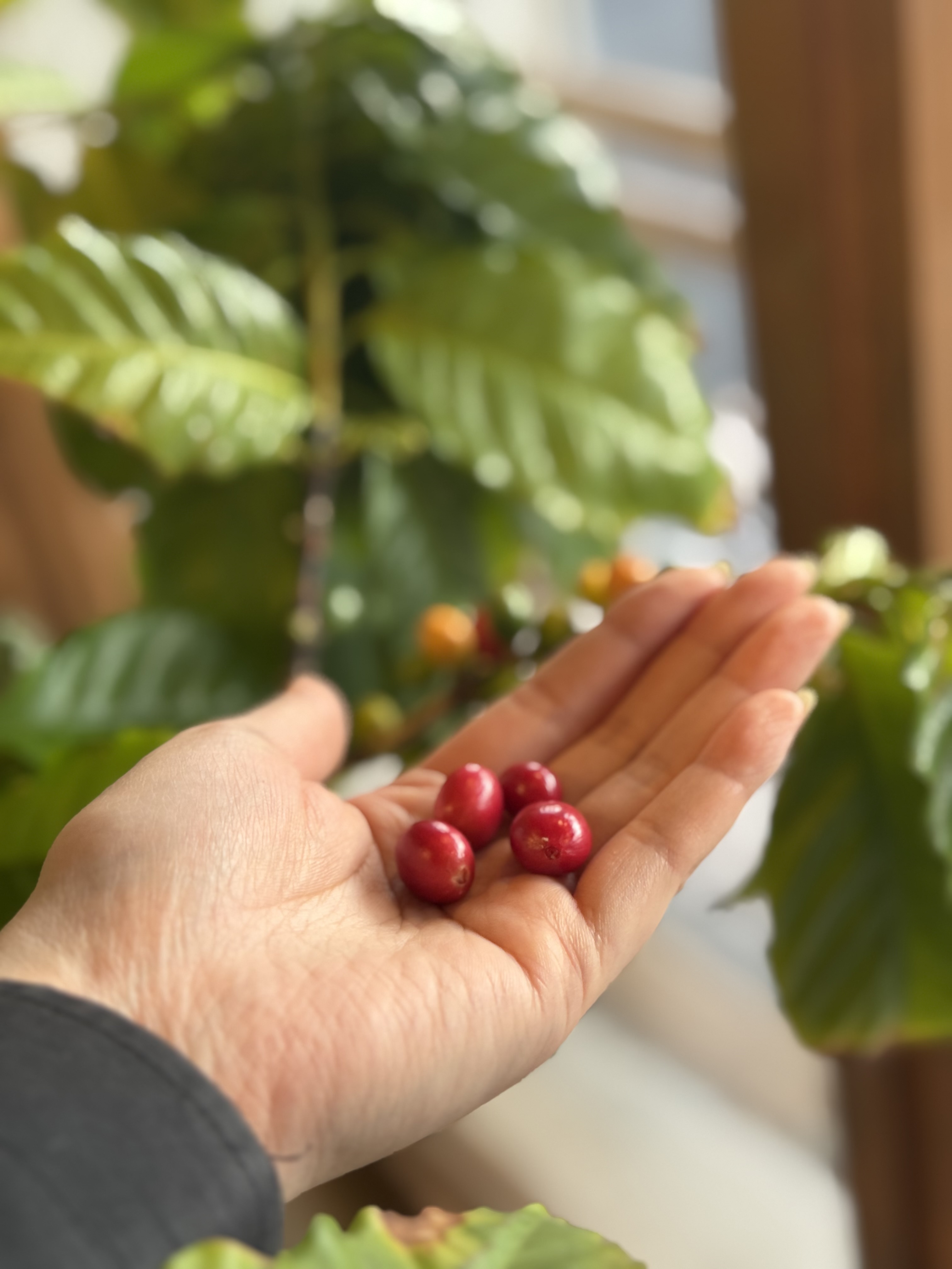 収穫を迎えたコーヒーチェリーが出てきました!