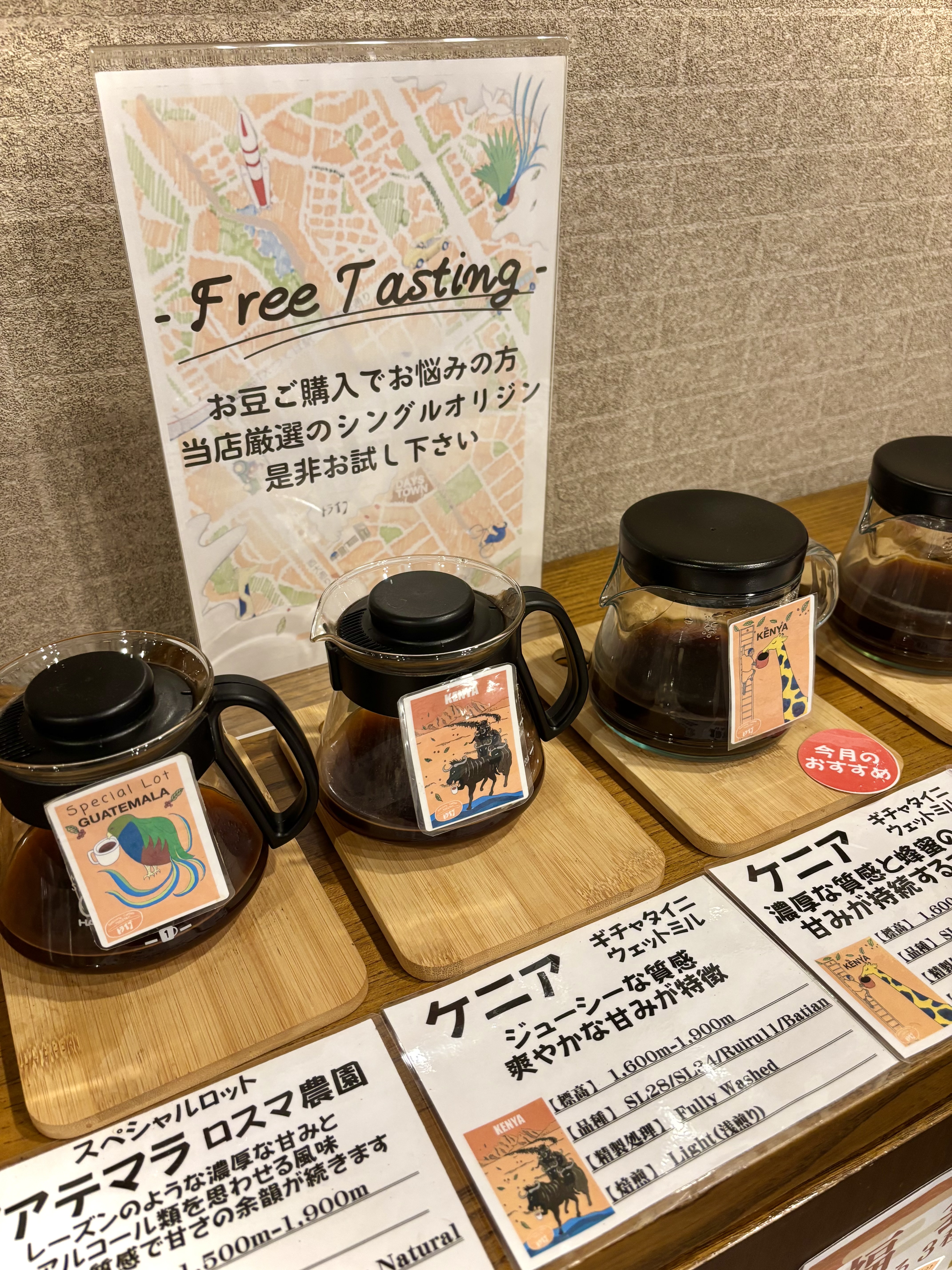 トライブでは、シングル豆のフリーティスティングをご用意しています。